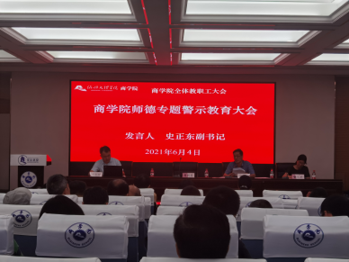 6月4日下午,商学院召开师德专题警示教育大会,院党委副书记、纪委书记史正东作师德警示教育专题报告,学院全体教职工参加了本次大会。