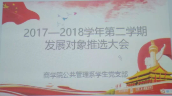 3月9日上午10:00,2017-2018学年第二学期商学院公共管理系学生会支部发展对象推选大会在仲申书院党员之家顺利召开。此次会议紧跟党支部发展党员工作计划,经上级党委预审同意,其主要目的是推选学生党支部的发展对象。