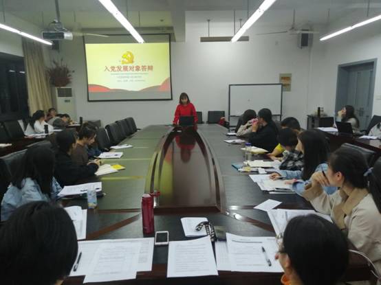 2018年10月29日晚上18:00,2018~2019学年第一学期商学院公共管理系学生党支部讨论推荐发展对象答辩会在综合楼c606会议室顺利召开。此次会议紧跟党支部发展党员工作计划,经上级党委预审同意,会议主要内容为:讨论推选学生党支部的发展对象。