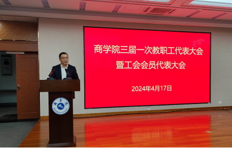 4月17日下午,商学院二届五次教职工暨工会会员代表大会在a405报告厅召开。院长王华锋作学院工作报告和财务报告,工会主席董德民作分工会工作报告和财务报告。