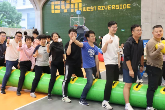 “千人同心,则得千人之力。”在趣味毛毛虫竞速的赛场上,教职工们站在同块木板上,他们齐心协力,心往一处想,劲往一处使。把手如同缰绳般紧勒,“左!右!左!右!”为了一致的目标奋力前行。“同舟共济扬帆起,乘风破浪万里航。”他们团结一心,向着胜利的终点奋勇前进。