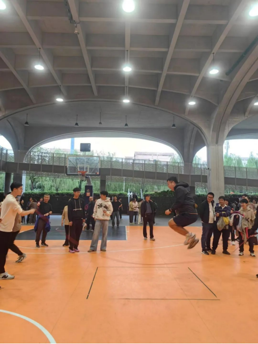 “绳影翻飞,似梦如幻。”这是活力与节奏的完美跳跃。微风与绳子抽打地面的响声共振,一曲激昂的乐章奏响。教职工们的口号响亮有力,充满了斗志与激情。绳子划破空气,在他们手中快速地转动。八字进出,井然有序,每一次充满了活力的跳跃,都是一次青春年少的回归。他们仿佛忘却了岁月的痕迹,尽情地享受着充满活力的瞬间。他们的脸上洋溢着灿烂的笑容,那是对青春的回望,对活力的追求。