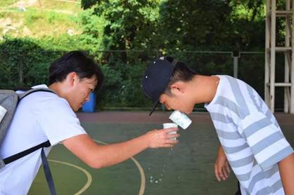 传递接水每组派四人参加,需要经过指压板、原地转圈、单脚跳后,由第四位队员将水倒进终点杯中,期间不得用手触碰纸杯。指压板对人的考验是巨大的,队员们为了队伍的胜利,即便脸上有着令人害怕的表情,步子却迈得极快,之后的队员们也都在为了队伍的胜利而努力,为每个努力的队员们点赞!