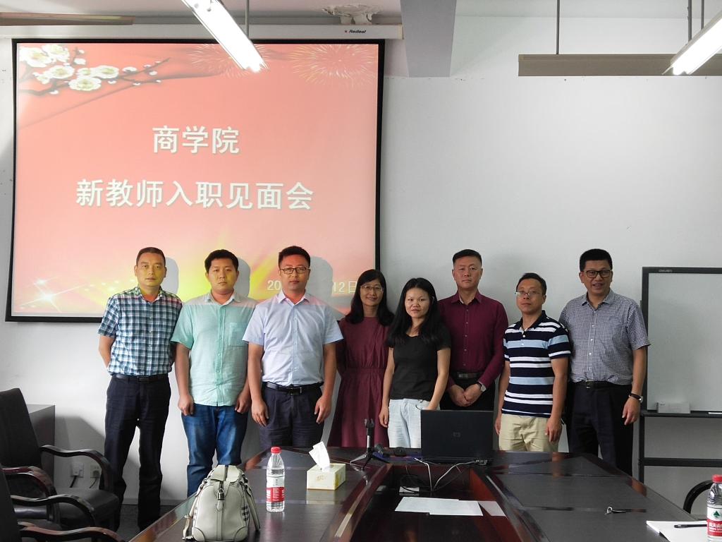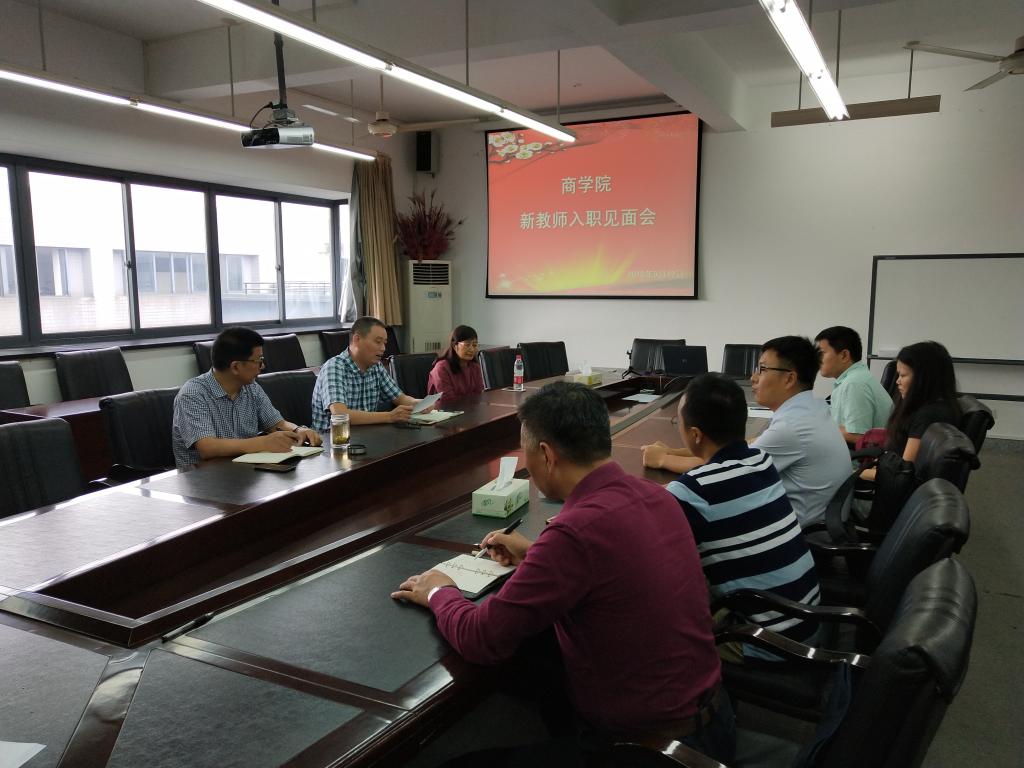 2018年9月12日下午,学院在c606会议室举行新教师入职见面会。周鸿勇院长、郑雨尧书记、喻文莉副院长以及五位新教师与会。
