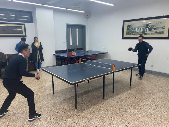 由绍兴文理学院商学院分工会主办的“商学院2021年教工乒乓球混合团体赛”于12月8日在商学院教工小家举办。本次比赛按照安排进行:混合团体赛由学院六个工会小组组成六支队伍,采用分组循环小组赛(两个小组,各三个队伍),两小组第一名争夺冠亚军。每场比赛共进行5盘,5盘3胜,每盘比赛3局2胜,11分制。5盘次序分别是:1.男子单打;2.混合双打;3.女子单打;4.男子双打;5.女子双打。每场比赛队员性别不要错,出场次数不限。混合双打比赛的发球和接发球实行女发女接、男发男接的规则。