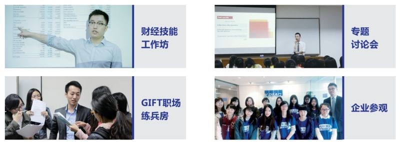 二、gift职业发展系列讲座:gift职业发展系列讲座以财经类人才发展素质提升为目标,通过邀请名企高管讲师进入学校定期演讲,以期提升大学生就业求职素质和硬技能,提高毕业后的竞争力。