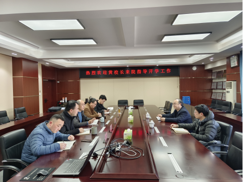 黄校长与学院领导班子成员进行座谈。王华锋院长代表学院向黄校长汇报了学院开学初师生返校、开学准备、第一周考试安排、第二周教学安排等相关工作,以及2023年学院重点工作,其他班子成员结合自己的分管工作作了汇报。