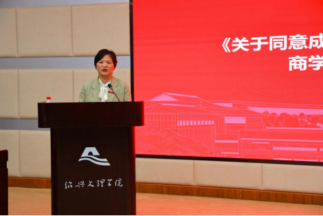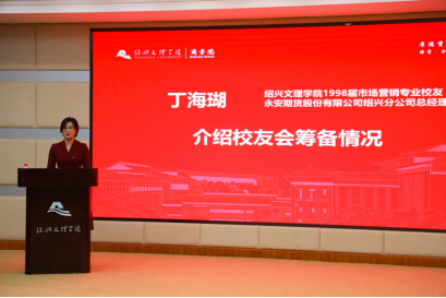 会上,校地方合作处、校友办(主持工作)副处长夏婷(2000届校友)宣读《关于同意成立绍兴文理学院校友总会商学院分会的批复》。