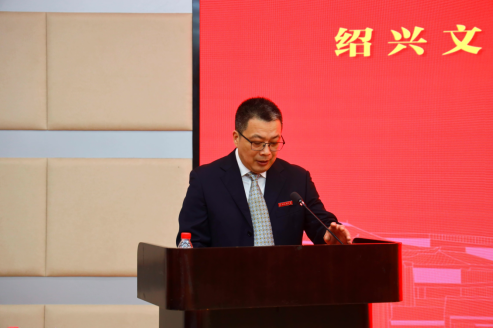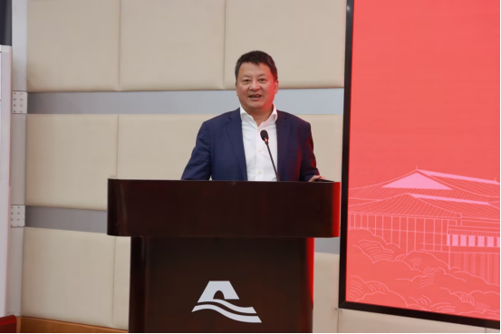 校党委副书记、校友总会会长沈赤向商学院校友分会授旗并赠送纪念盘。沈赤代表学校党委及校友总会对商学院校友分会成立表示祝贺,向与会嘉介宾绍了学校近年来取得的发展成就,并对商学院的发展给予高度肯定。他指出,商学院校友分会成立意义深远,不仅是母校校友工作的一件大事,更是校友与母院之间相互联系的桥梁和纽带,将为学院和学校的发展注入新的活力和动力。同时为更好地构建母校与校友“发展共同体”,他提出三点希望:一是服务校友,加强校友会自身建设,努力建成真正的“校友之家”;二是服务母校,密切母校与校友的沟通联系,开展全方位、深层次、实质性的交流互动;三是着眼大局,发挥校友会在母校发展中的推动作用,充分开展产教学研的深入合作,真正做到有为有位,实现校友与母校的同进步、共发展。