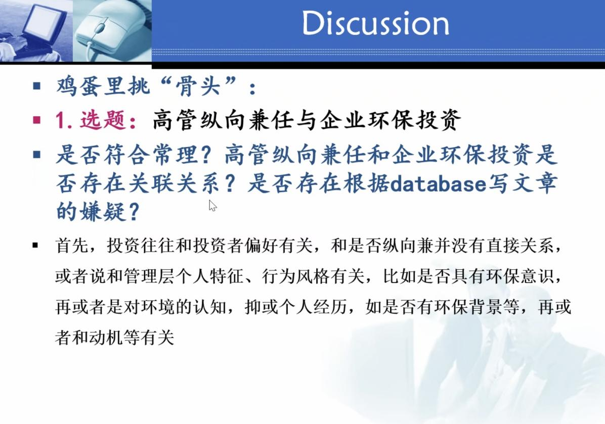 在每位同学进行汇报后,三位老师耐心、认真、严谨地指出了同学们论文的优点,再从论文格式、选题意义、理论分析逻辑、实证分析数据结论以及贡献等方面提出论文中存在的问题,并对各个问题的优化方向给出了可行性建议。参与汇报的同学积极听取老师们的建设性意见,不断完善论文内容,为早日发表高质量的论文奠定了基础。