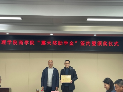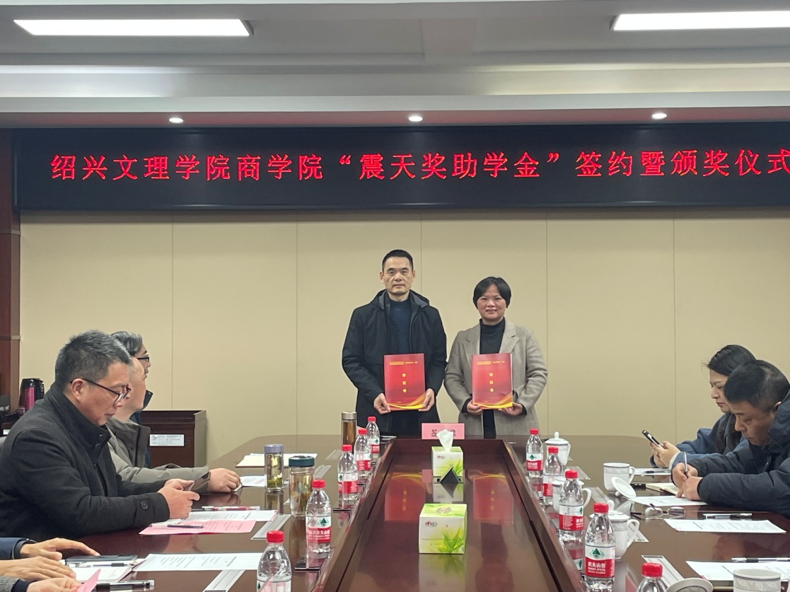 12月28日下午,商学院“震天奖助学金”签约及颁奖仪式在c606会议室举行。浙江震天律师事务所徐志庆主任一行,校地方服务与合作处(校友办、教育基金会)负责人夏婷,商学院党政班子成员及法律系教师代表参加了仪式。仪式由学院党委副书记周建强主持。