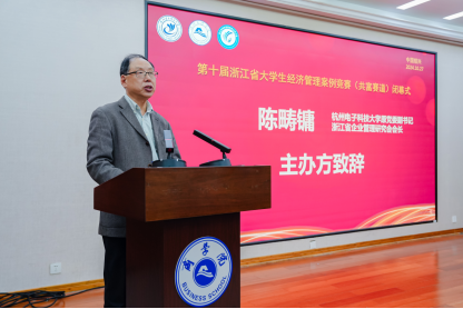 陈畴镛代表主办方致辞,他对本次大赛的成功举办表示祝贺,并表示案例分析是经济管理学科中重要的研究方法,期待未来能有更多优秀的经济管理人才能够通过经济管理案例竞赛获得成长,为社会经济发展贡献力量。