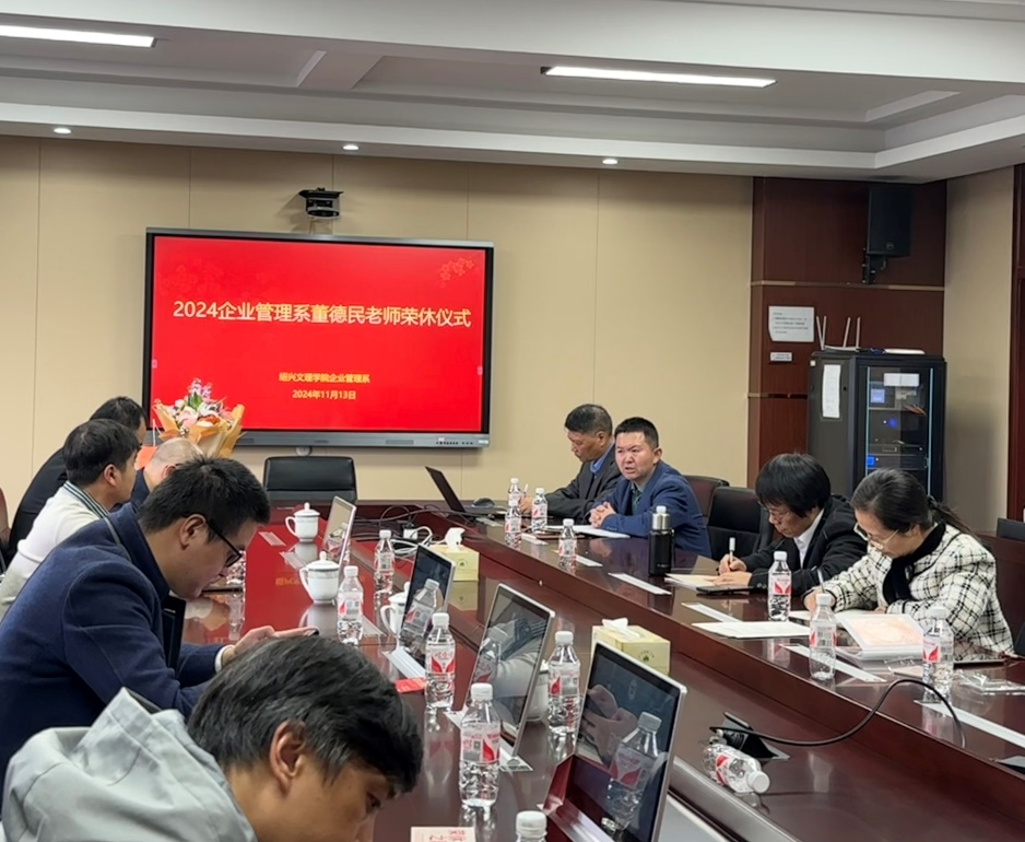 随后,企业管理系为董德民老师举行了隆重的荣休仪式。董德民老师从教40年,兢兢业业,是绍兴文理学院教书育人的楷模,主持国家一流课程,省精品课程,先后主持20余项科研教学项目,发表50余篇论文,对绍兴文理学院商学院的实验室建设和企业管理系的发展作出了巨大贡献。企管系老中青三代教师代表畅铁民,李小明,陈伟,及商学院前院长周鸿勇教授,商学院副院长丁志刚老师等回顾了和董老师共事的点点滴滴,对董德民老师40年辛勤的工作和教书育人给予了高度评价。董德民老师回顾了在绍兴文理工作中的种种趣事,分享了自己在教学和科研工作中的经验,为青年教师提供了很多宝贵的建议。