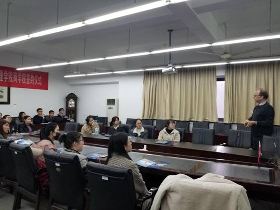 双方重点洽谈创新合作模式,建立远程网络在线教学,并就继续深入教学合作、教师互访、建立科研合作平台等事宜达成一致共识。dr.donald finlay和石雨洁老师还为我院国际合作班学生做了留学讲座,对申请流程及注意事项做了细致的解读,为学生出国学习交流提供了宝贵的意见和建议。