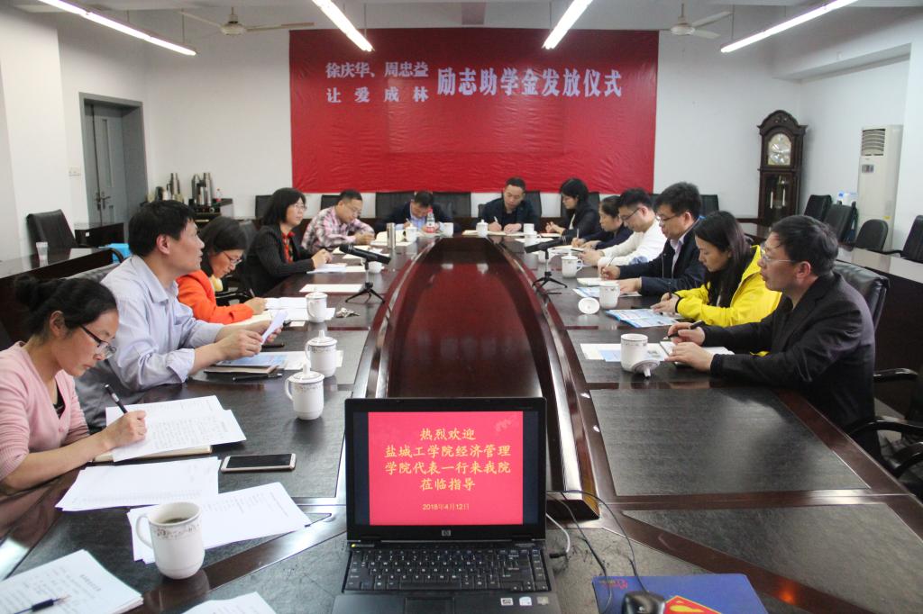 4月12日下午,盐城工学院经济管理学院赵永亮院长一行来我院调研,学院郑雨尧书记、喻文莉副院长、董德民、赵秀芳、王永乐、庞飞等相关老师参加调研会。会议就实践教学办学理念、acca方向班办学经验、国际化教学、社会化服务等方面做了交流学习。