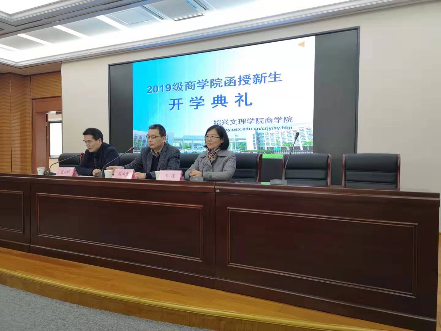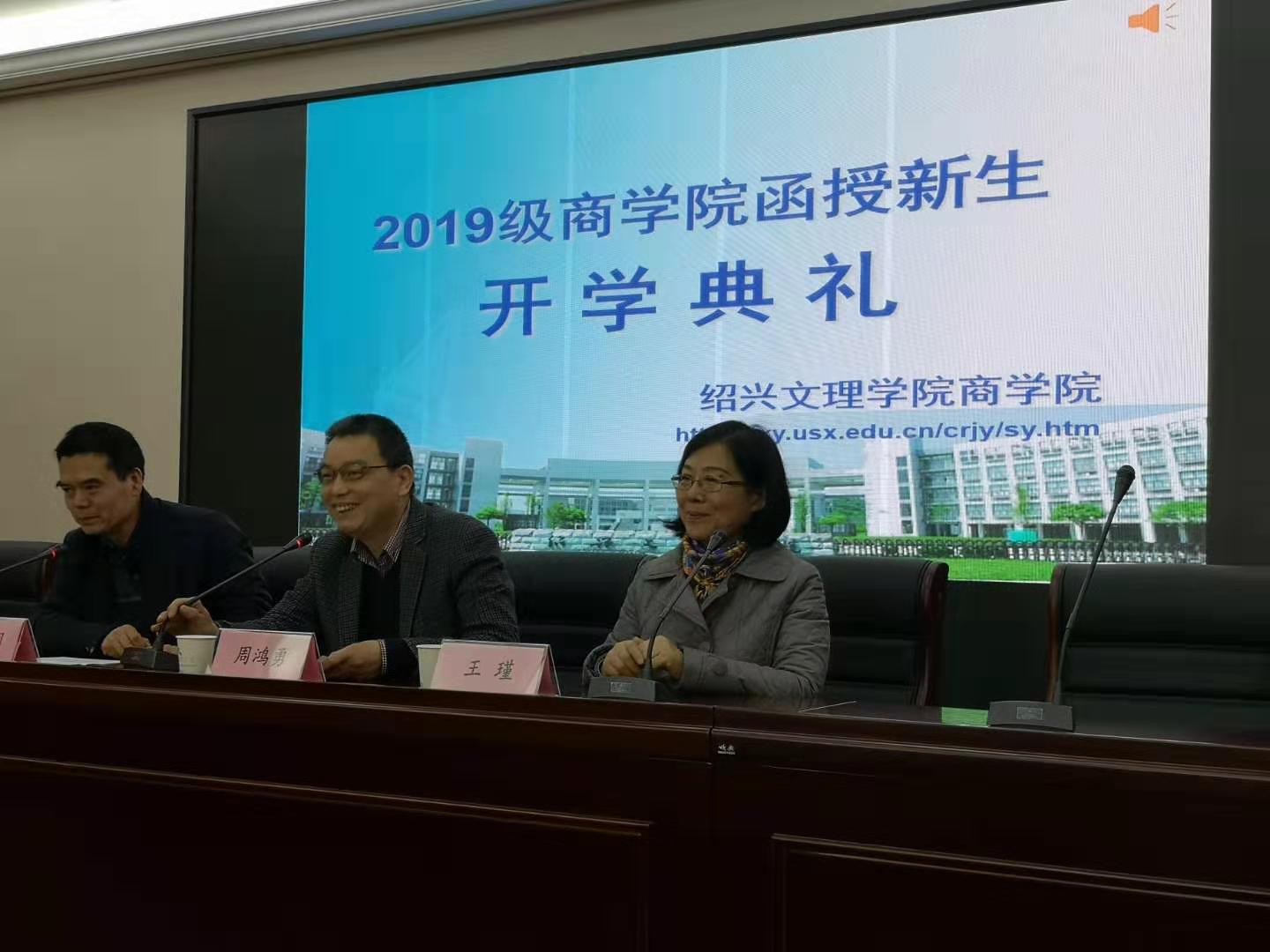 3月17日上午,绍兴文理学院商学院成人教育2019级新生开学典礼在南山校区综合实验楼商学院报告厅举行。学院院长周鸿勇、副院长王瑾、成教办主任裘雨明及全体新生参加了本次大会。在嘹亮的国歌声中,2019级新生开学典礼正式开始,会议由成教办主任裘雨明主持。