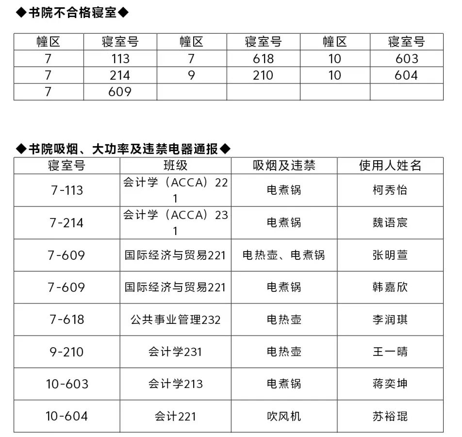 在此特别要求各寝室长及时做好反馈传达工作,督促好寝室的卫生和安全,十分感谢大家的配合。如有疑问,可以联系仲申书院舍务部 qq:3116388530