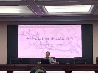 2020年6月18日,法律系《行政法与行政诉讼法》课程主讲老师徐肖东博士邀请到了绍兴市政府办公室杨志敏主任。杨主任结合自己几十年的政府法律工作,与法学18级同学分享了题为“法治政府建设与行政执法实践”的报告。杨主任回顾了我国法治政府建设的历程,在高度肯定已取得的成绩外,提出了法律适用错误、执法程序不规范等问题。杨主任用李文亮事件、温岭爆炸事故等热点对执法不作为、执法不严、执法不规范等问题进行了深度剖析,并提出了相应的构建思路。