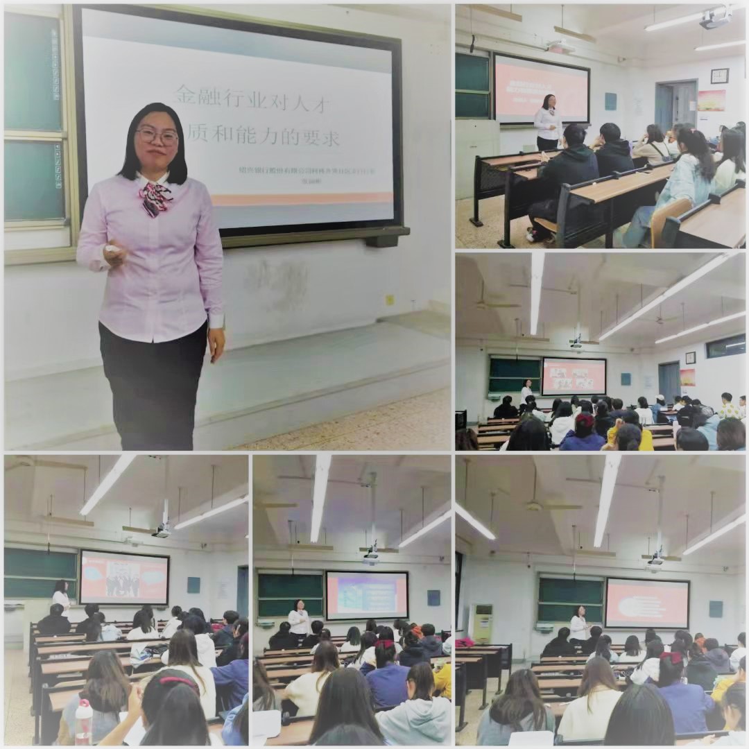 2021年10月20日,绍兴文理学院商学院邀请到2012届优秀毕业生绍兴银行齐贤社区支行行长张丽彬女士为国贸专业一到三年级学生开展了一次精彩纷呈的业界精英进课堂讲座,讲座的主题是“金融行业对人才能力和素质的要求”。