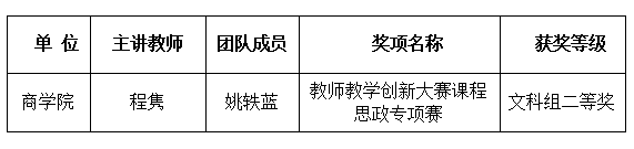 近日,浙江省第二届高校教师教学创新大赛在浙江师范大学举行,经过激烈角逐,我院程隽老师在“课程思政”专项赛中获文科组二等奖,成绩喜人!