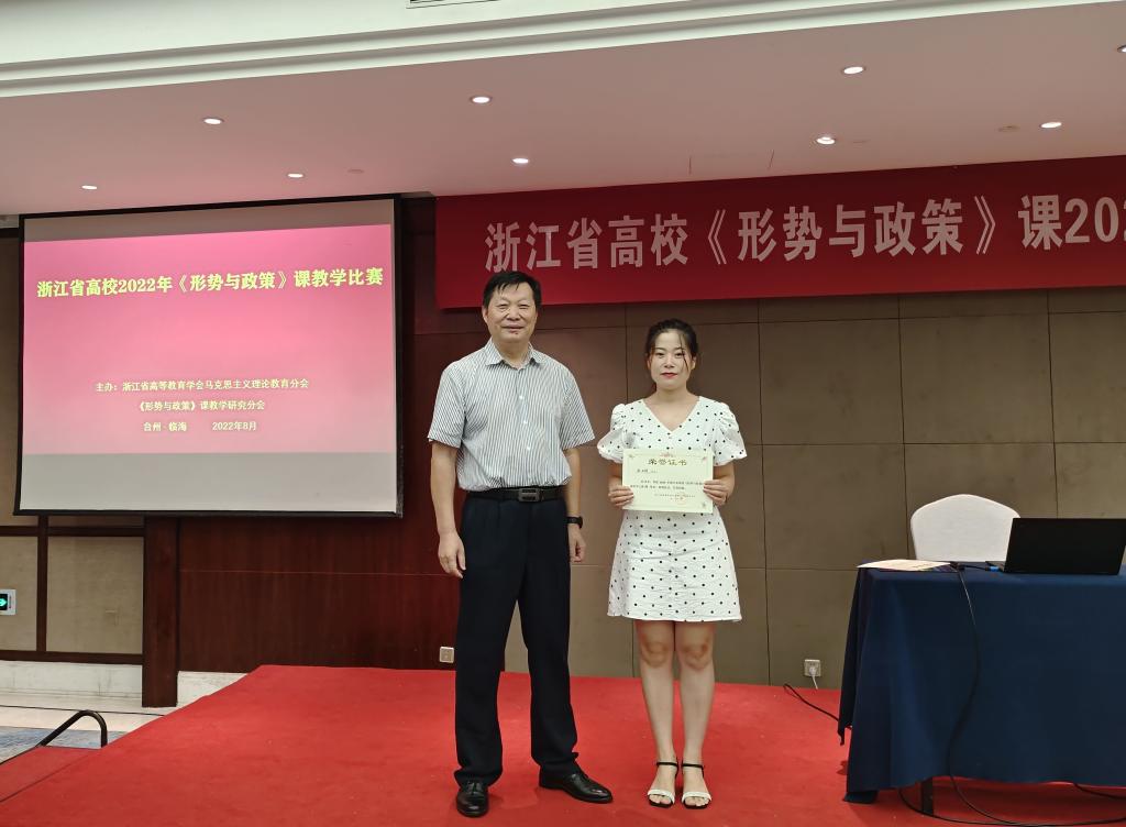 浙江省高校《形势与政策》课教学比赛是全省高校思想政治理论课教师参加的高水平教学比赛,是《形势与政策》课教师展现风采、体现水平、切磋交流的重要平台。本次比赛得到了马克思主义学院和学院的极大支持。此次获奖既是深入学习贯彻习近平总书记在学校思想政治理论课教师座谈会上的讲话精神的具体成果,是学习浙江省15次党代会精神的具体成果,也展示了我院《形势与政策》课教师的风采。