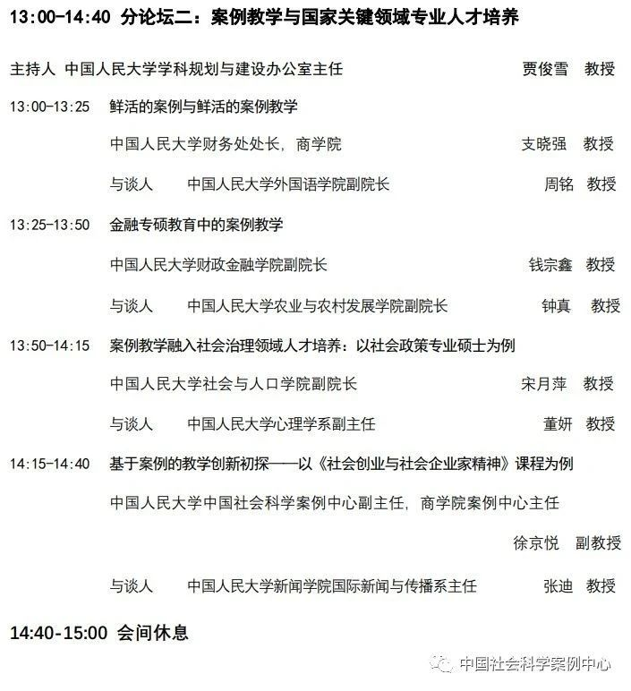 “中国社会科学案例论坛”创办于2015年,至今已举办至第九届,由中国人民大学主办,教育部学位与研究生教育发展中心指导,中国人民大学研究生院、科研处、中国社会科学案例中心,以及中国人民大学相关学院联合承办。经过多年积累,中国社会科学案例论坛已经成为人大一张特色的专业学位人才培养名片,在专业学位研究生教育领域形成了标杆式引领力和产生了广泛影响。历年来论坛规模逐步扩展,第八届论坛吸引了来自全国280多所高校近3000名师生线上参与。