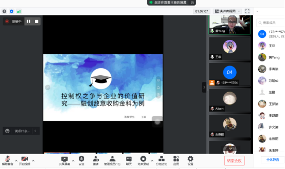通过本次选题论证会,20级会计专硕研究生对于自己的毕业论文选题有了更深刻的认识,为下一步写出符合要求的高质量论文打下了良好的基础。同时,由于本次选题论证会以网络会议的形式开展,许多研一的同学也都参与了旁听。会后,所有参会的同学都表示参与本次选题论证会有许多启发和收获,对于后续论文正式开题具有重要意义。