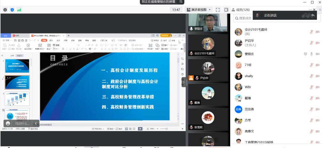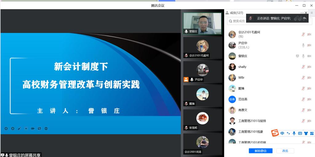 5月29日晚,mpacc教育中心联合会计系、风则江会计协会举办了第16期稽山会计论坛,本次论坛邀请到广东职业技术学院资产管理部副部长訾银庄作题为“新会计制度下高校财务管理改革与创新实践”的专题演讲。为严格落实疫情防控的相关要求,本次讲座通过腾讯会议举办。部分会计专业教师、会计学研究生、会计学本科生和风则江会计协会成员参加了本次讲座。本次讲座由mpacc教育中心主任尹启华主持。