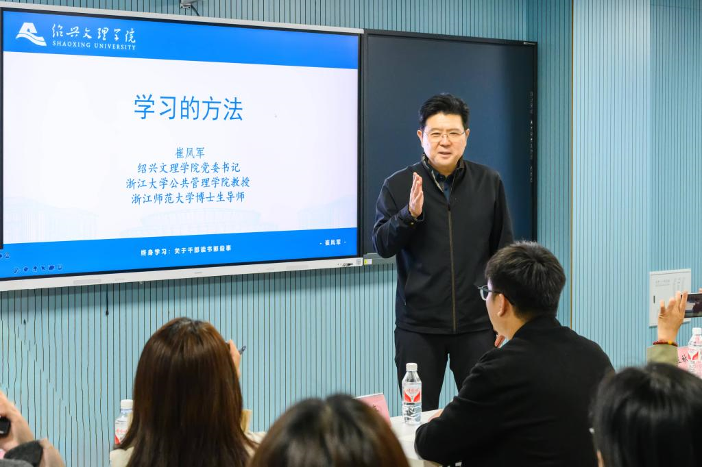 10月22日晚,绍兴文理学院夜校揭牌暨开班仪式举行。校党委书记崔凤军、副校长柳国庆出席仪式并为“绍大夜校”揭牌。崔凤军为学员讲授夜校第一课《领导力塑造:职业规划与职场心理学》。